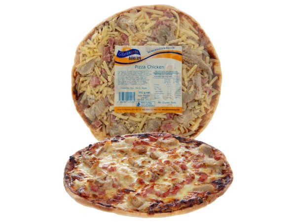 Chicken Pizzas are made with our own pizza bases, then topped with a BBQ pizza sauce, a blend of cheeses and our chicken , onion and bacon blend to ensure lots of flavour.